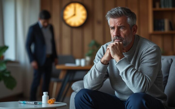 Dans certains cas, ce n’est plus une simple fatigue, mais une vraie dépression. L’homme ne se reconnaît plus : perte d’envie, isolement, irritabilité, disparition de ses passions, troubles du sommeil, sensation de vide. La libido s’éteint alors en même temps que le reste. Le plaisir sexuel ne peut pas fleurir sur un terrain émotionnel complètement asséché.